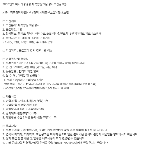 2018년도 미사리경정장 체력증진교실 강사모집 공고문