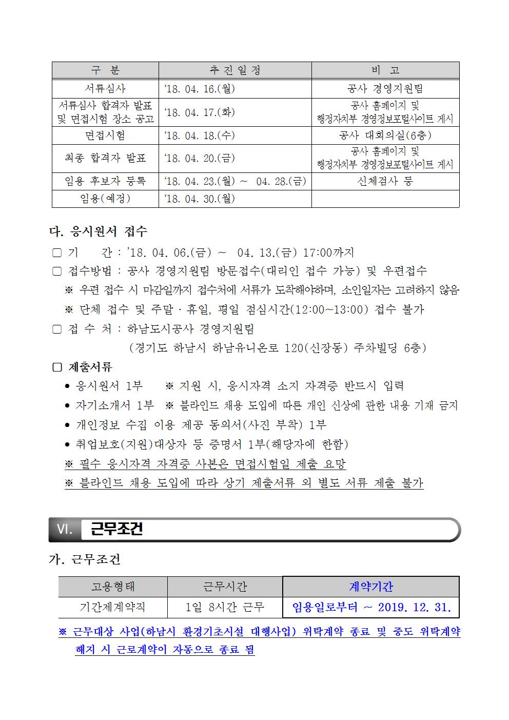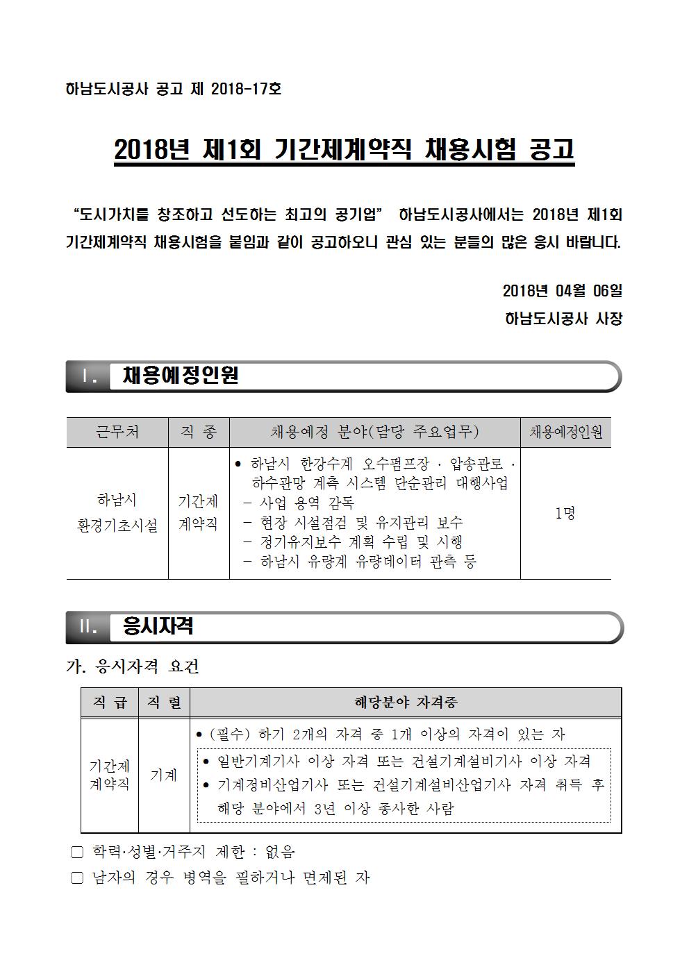 (하남도시공사)2018년 제1회 기간제 계약직 채용 공고