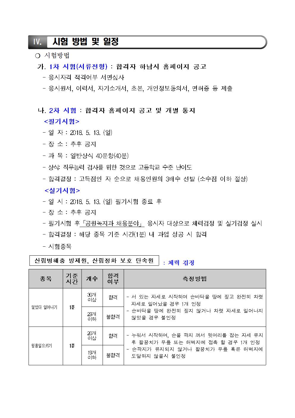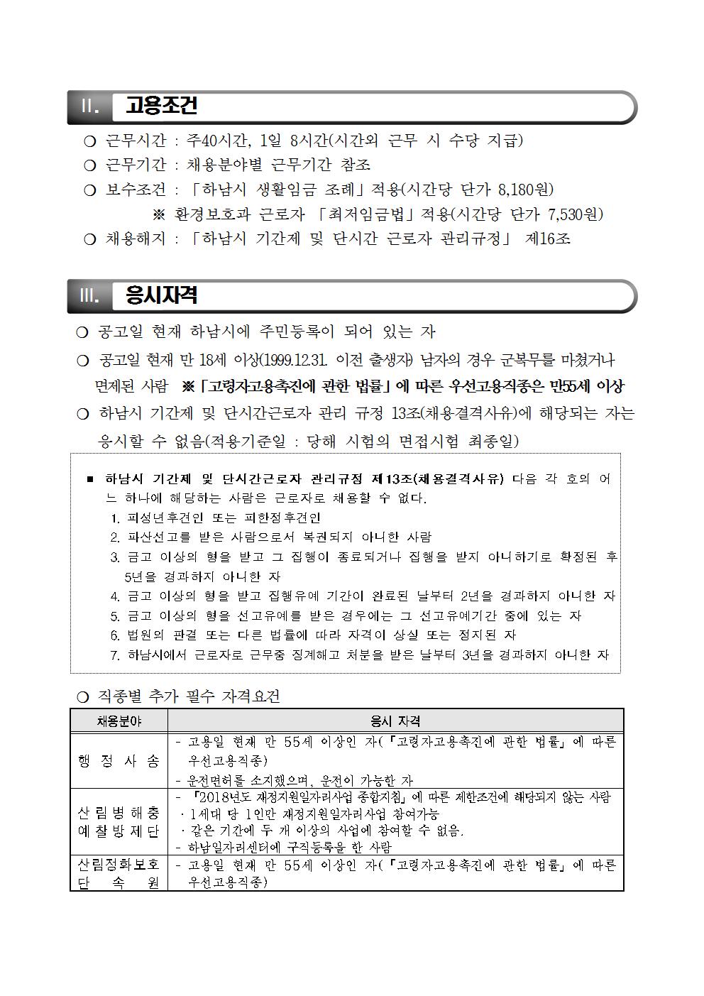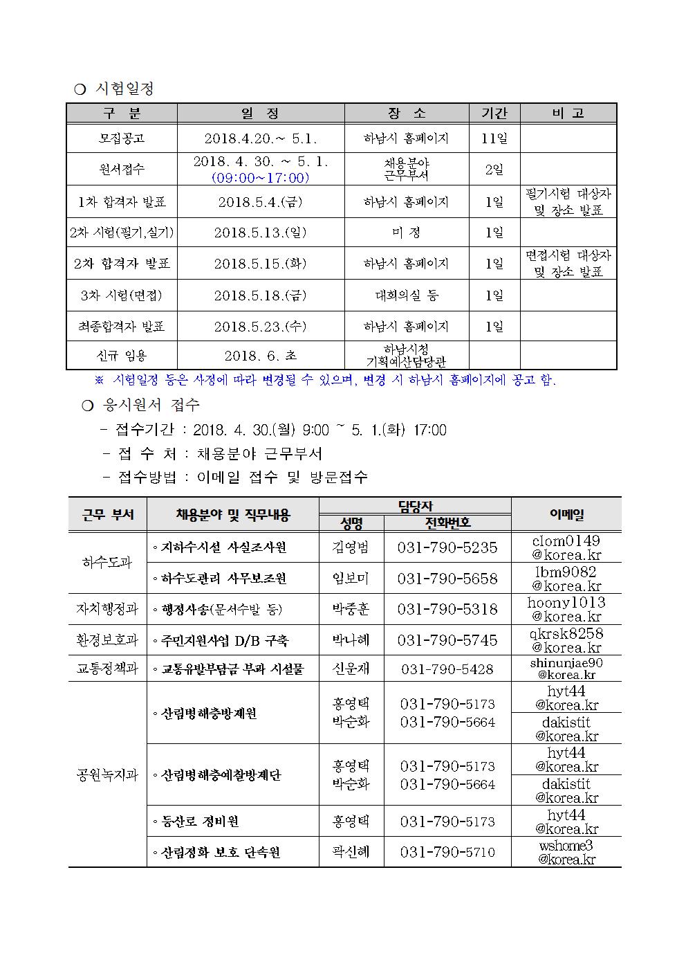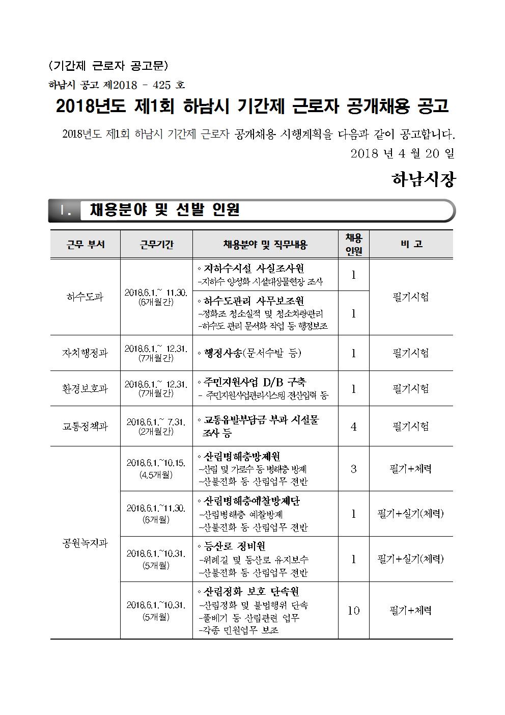 1. 2018년 제1회 하남시 기간제근로자 공개채용 공고문.