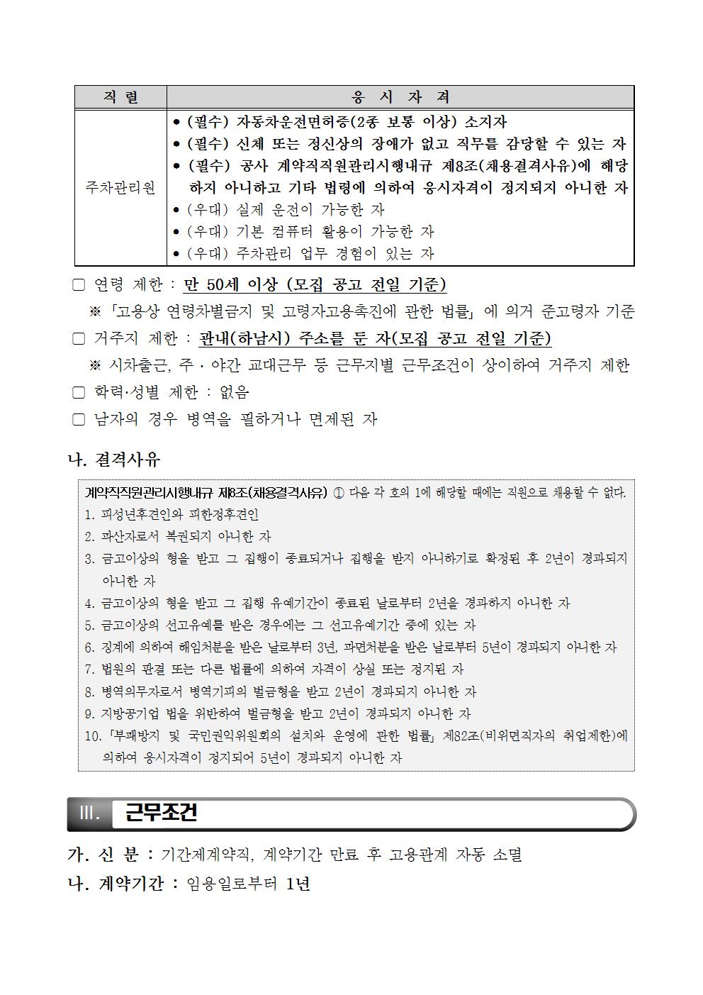 [하남도시공사]2018년 제2회 기간제계약직(주차관리) 채용 공고