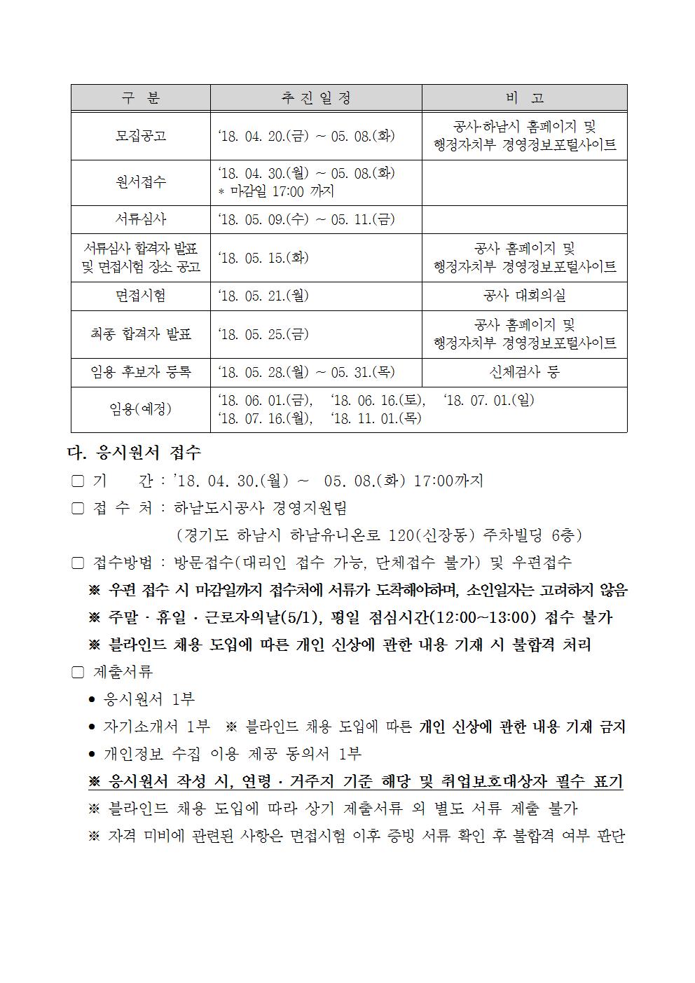 2018년도 제1회 하남시 기간제근로자 공개채용 공고