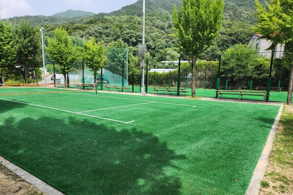 하남교산 신도시 건설로 인해 그동안 운영돼온 교산동 ‘하남시 족구장’이 폐쇄, 인근 감북교 하부로 이전해 조성 추진된다.(사진은 지난해 6월 재 오픈한 하산곡동 풋살장·족구장 현장 모습)